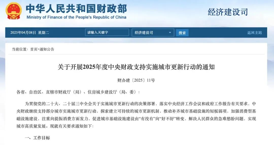 關(guān)于開(kāi)展2025年度中央財(cái)政支持實(shí)施城市更新行動(dòng)的通知