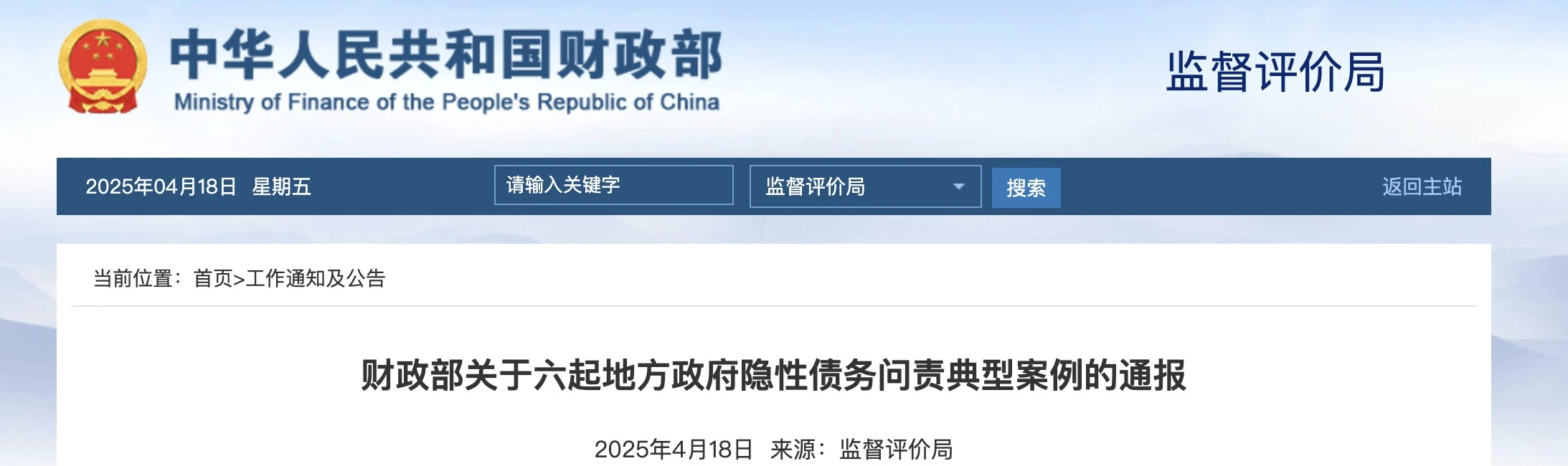 財(cái)政部通報(bào)六起地方政府隱性債務(wù)問(wèn)責(zé)典型案例!