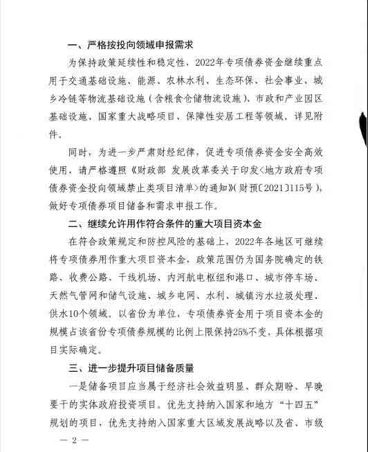 財(cái)政部 發(fā)改委聯(lián)合發(fā)布2022年政府專(zhuān)項(xiàng)債項(xiàng)目申報(bào)要點(diǎn)及建議